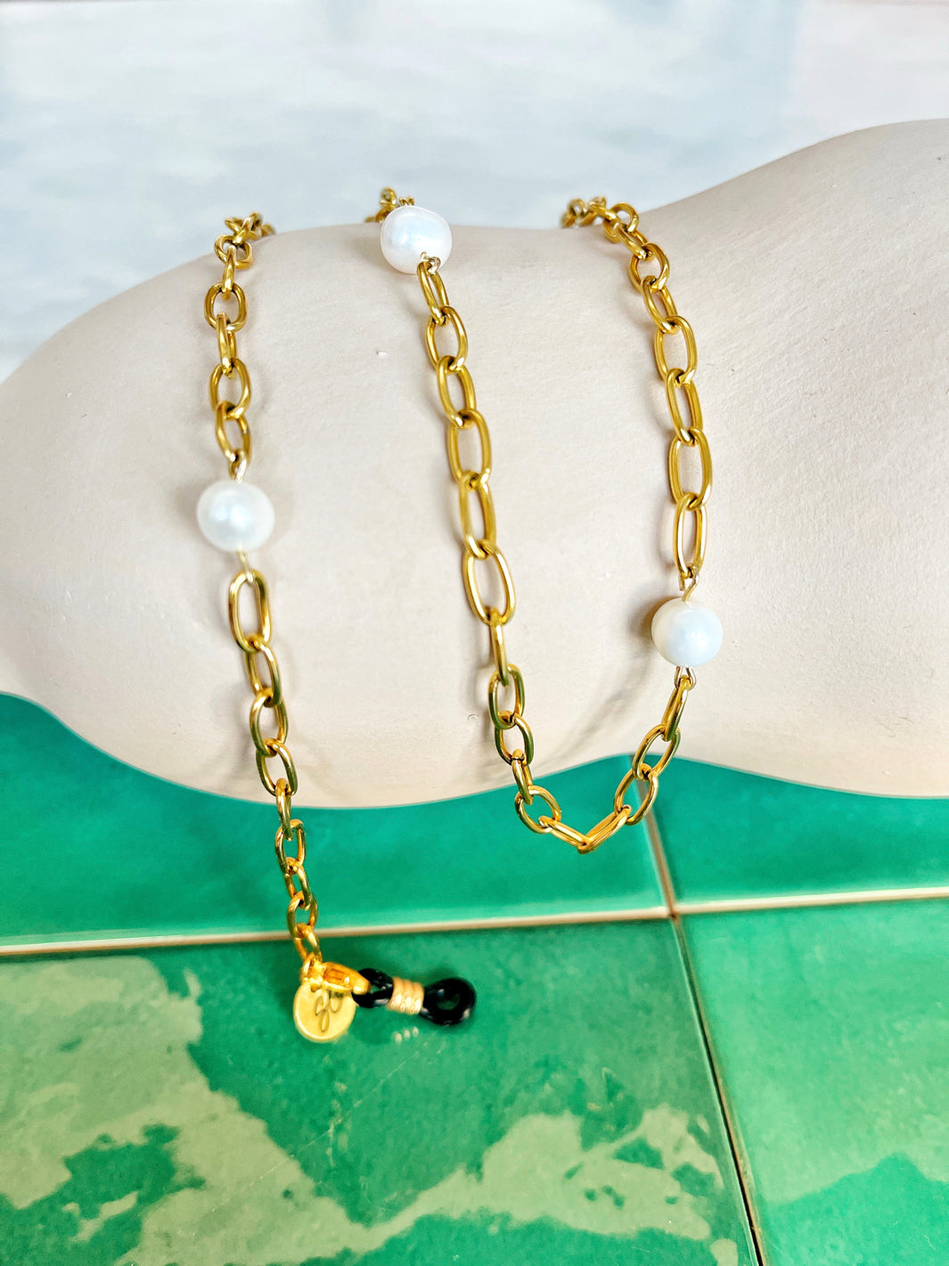 Always on the go? With this pearly cord, you won't lose your glasses during a busy day. This golden chain with classy pearls from ourSunny Cords x Lizzy van der Ligt line is a real eye-catcher. Whether you wear it with your daily work-look or a breezy summer dress, Busy Babe is always a good match.