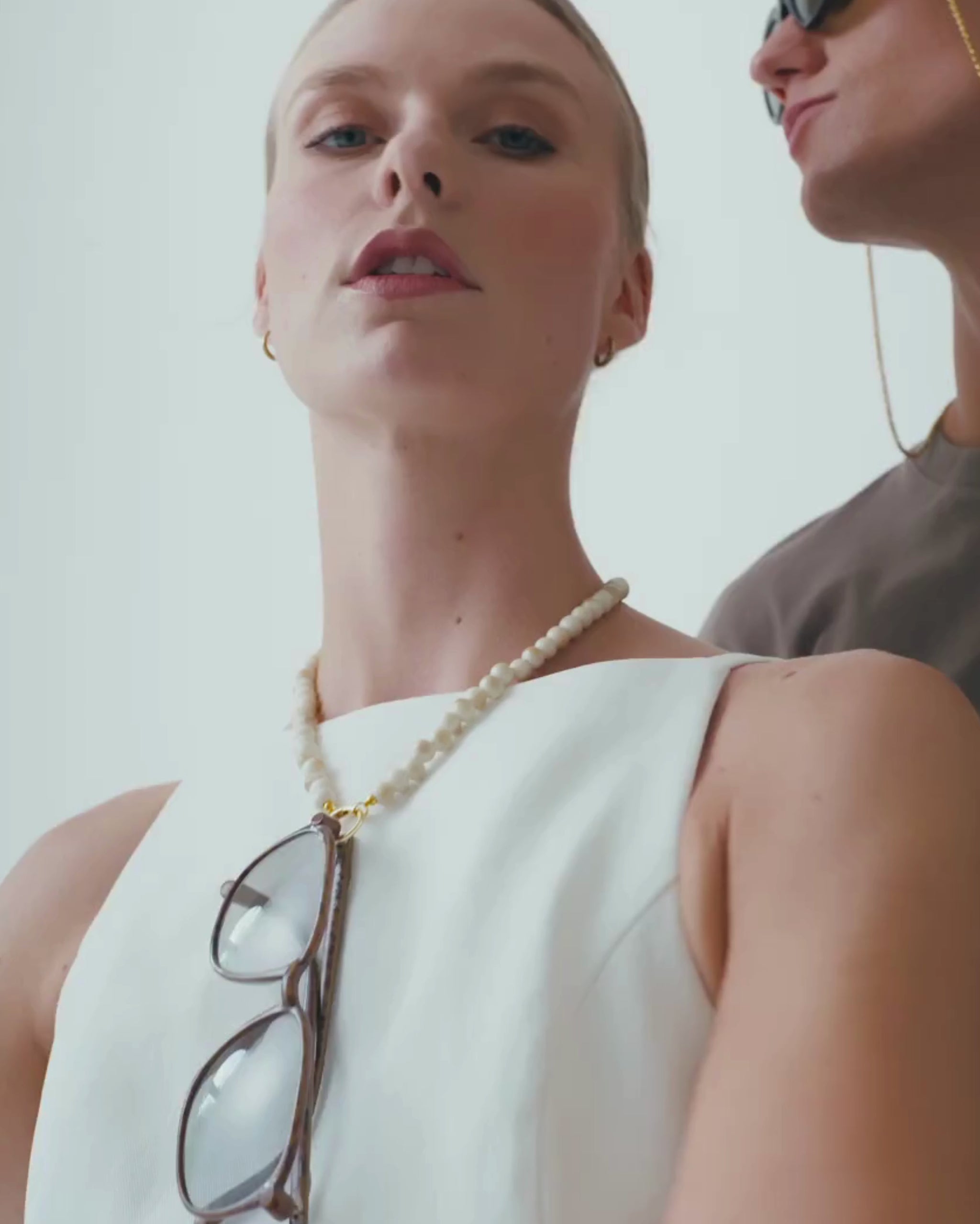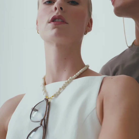The Ceramico Blanco Eyewear Necklace blends subtle tones with timeless sophistication. Handcrafted with white ceramic beads and finished with a gold-plated ring, it’s an elegant statement that doubles as a smart eyewear holder. The 18 mm ring easily fits most eyewear legs for effortless daily wear.