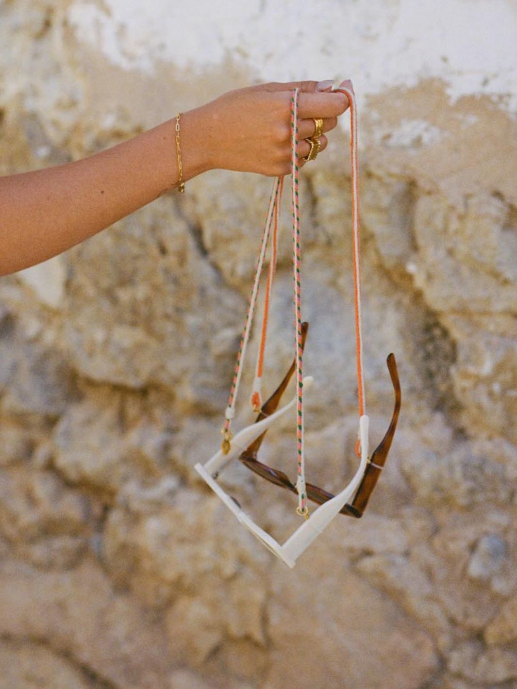 This eyewear holder is made by Yoselin Jusayu and her family from the Wayuu community in northern Colombia. They have handwoven this Sunny Cord by using the traditional trenzado finger loop technique. They needed two people to create this glasses cord who are sitting on both ends of the string. This beautiful piece is made with all their passion, patience, and love.